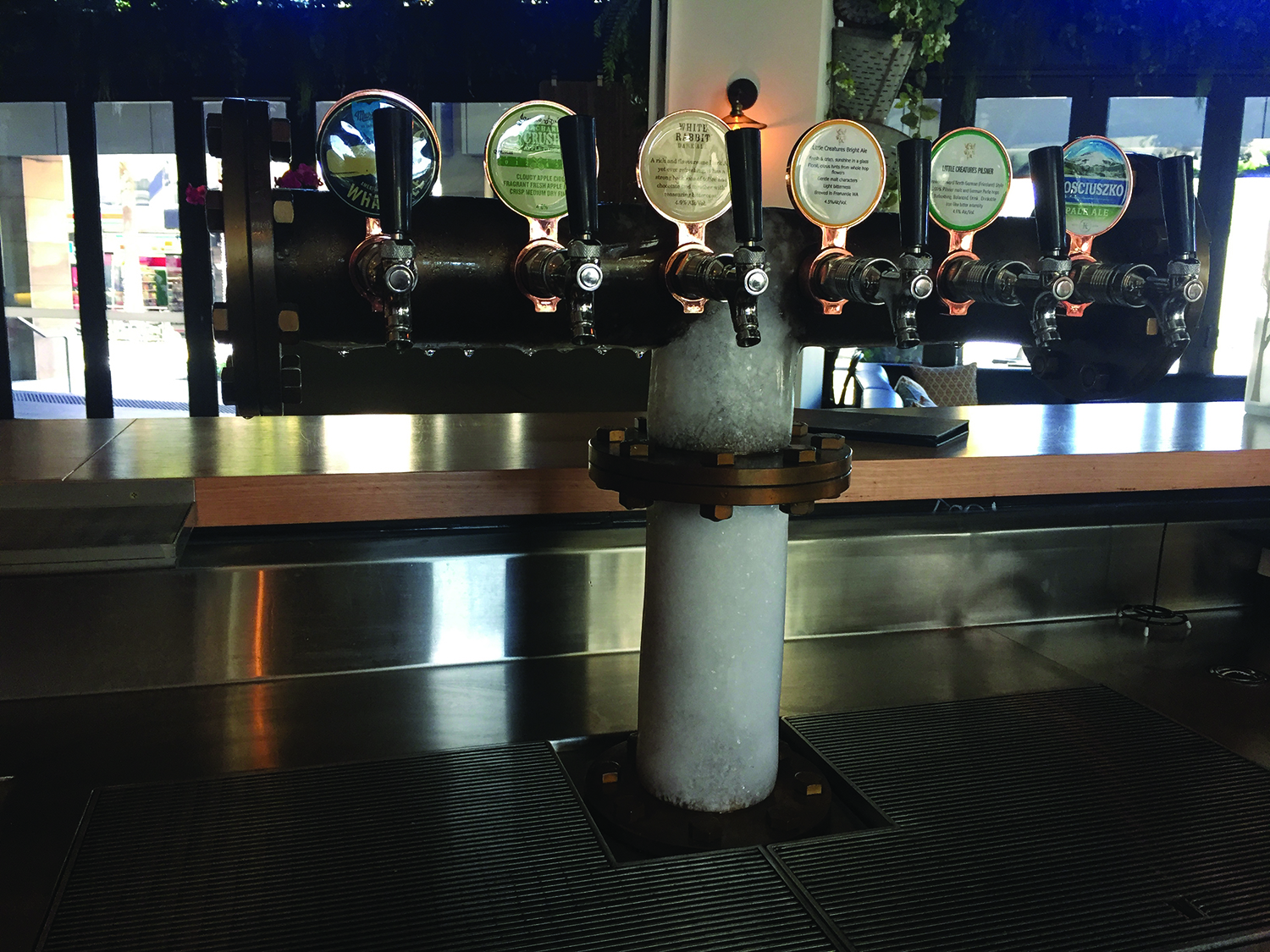 Next crucial part of your custom made bar bench will be the Beer station. Beer fonts either ‘goalpost’ style, cobra or whichever creative style decided on will dispense your beers (and in some cases wines) for your guests. Sizes will depend entirely on the number of brands you will serve from each station, usually 4-7 fonts are housed in each set of fonts and will include a purpose designed drip tray beneath.