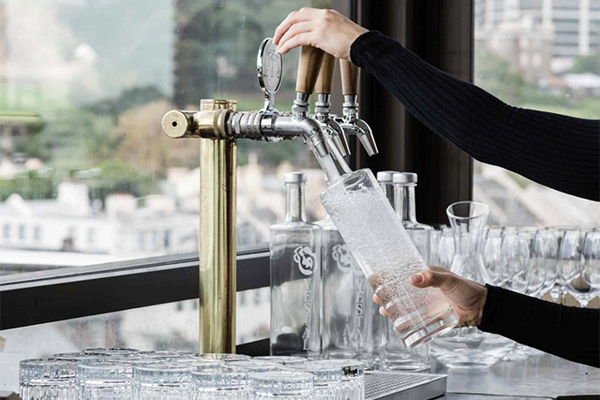 Similar to the beer station many cafes and bars are installing a dedicated Water station and often located in the bar. Here fonts similar to beer fonts dispense chilled and sparkling water using brands such as Purezza, Moda and Vestal.