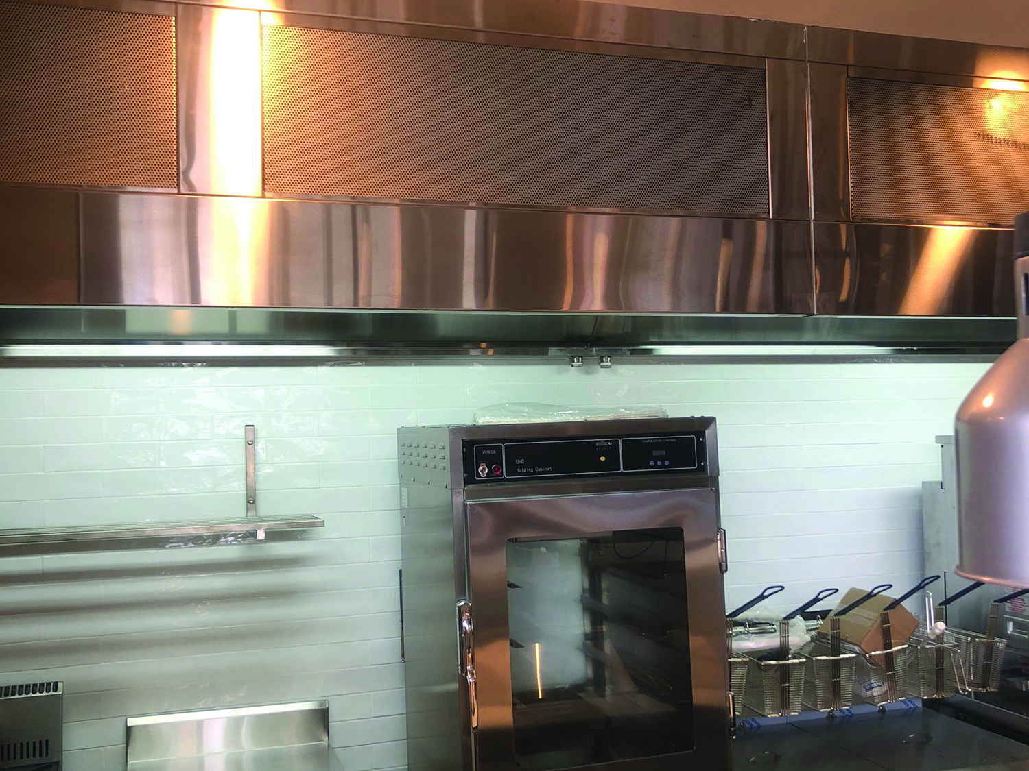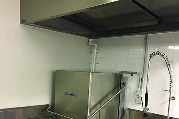 Condensate hoods are also required above dishwashers and larger models to remove steam from the environment. All hoods are either custom made locally or engineered by Britannia or Halton.