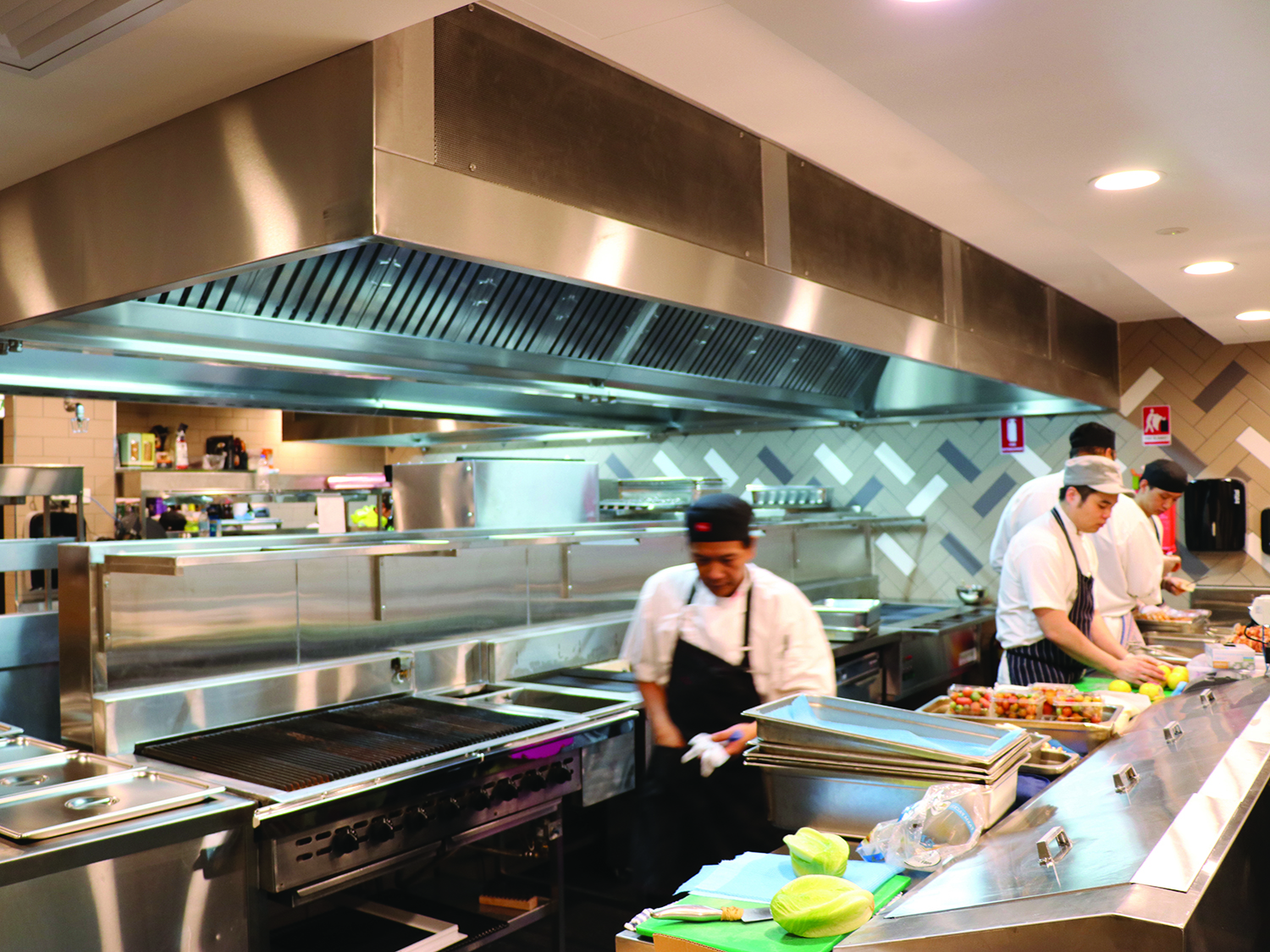 All commercial kitchens are governed by the ventilation standard AS1668.2 2012. This outlines requirements over cooking lines and dishwashers. Exhaust hoods above cooking lines need to remove fumes and smoke that contain particles of oil and food. All hoods have filters and lights and when specified, make-up air flowing back in with UV options available. Solid fuel cooking requires a specialised misting hood.